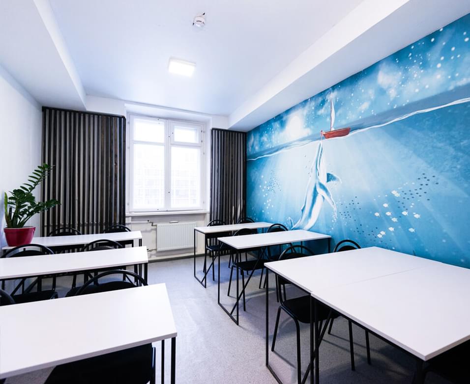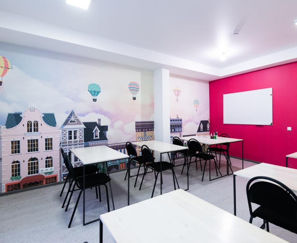 Наши студии находятся в самом центре Минска (ул. Володарского, 10 и пл. Свободы, 4). Аудитории подготовлены для занятий и комфортны для учеников, а современное техническое оснащение делает учебный процесс более увлекательным и помогает быстро усваивать информацию. В свободном доступе всегда есть питьевая вода, чай и кофе.